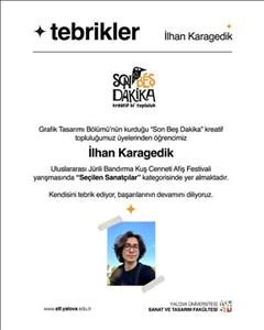 The work of our Graphic Design Department student İlhan Karagedik has been selected for exhibition at the International Bandırma Bird Sanctuary Poster Festival, organized in collaboration between Bandırma Onyedi Eylül University Faculty of Art, Design and Architecture and Bandırma Municipality. The exhibition will take place on Thursday, May 29, 2025, at 4:30 PM in Bandırma Republic Square.