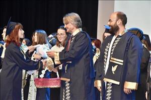 Yalova University Faculty of Art and Design bid farewell to its 2025 graduates at a ceremony held at the Mehmet Okul Congress Center on June 25, 2025. The ceremony began with a moment of silence in honor of the Founder of the Republic of Turkey, Great Leader Mustafa Kemal Atatürk, his comrades-in-arms, and our beloved martyrs, followed by the recitation of the National Anthem. The graduation ceremony was attended by Yalova Provincial Gendarmerie Commander Colonel Ercan Altın, Yalova Provincial Police Chief Ümit Bitirik, Rector Prof. Dr. Mehmet Bahçekapılı, Vice Rector Prof. Dr. Taner Tatar, Dean of the Faculty of Art and Design Prof. Nedret Yaşar, Vice Dean and Head of the Interior Architecture Department Assoc. Prof. Dr. Kubulay Çağatay, Associate Dean Assoc. Prof. Dr. Orhan Erkal, Head of the Graphic Design Department Assoc. Prof. Dr. Nursel Karaca, faculty members from the Graphic Design, Interior Architecture, and Painting Departments, our faculty's graduating students, and their families.