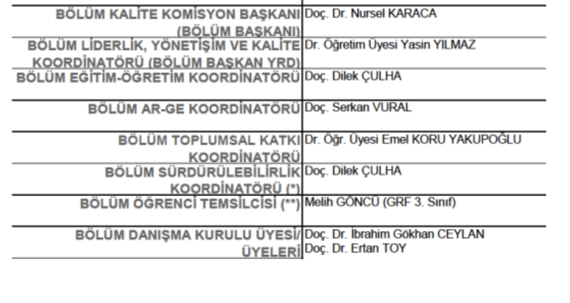 Bölüm Kalite Faaliyetleri